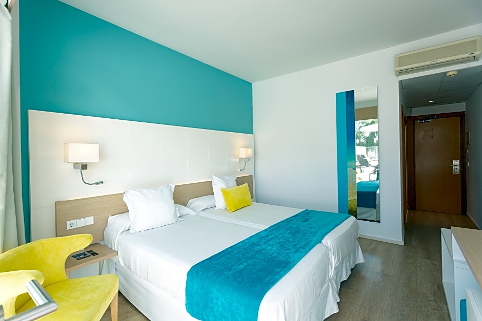 This room comes with 2 single beds side by side. All rooms are air conditioned and heated, with a balcony or terrace offering garden, pool or sea views. They include a 29-inch LED TV, fridge and armchair. The private bathroom comes with a shower, hairdryer and magnifying mirror.